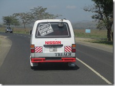 I don’t know who decides what decals should decorate the individual daladalas – the owner of the vehicle, the driver? As I’ve mentioned before, there seem be either religious or hip-hop themed, but there are also a lot of futbol ones as well (yes, the soccer kind, not American football). In addition to the backs and sides of the vans being decaled there is usually one word over the windshield..for some reason there is an odd affinity for “Cupcake” and “Led Zeppelin” (which has also included Led Zepperlin and Led Zeppein). No idea what’s up with “Cupcake”.